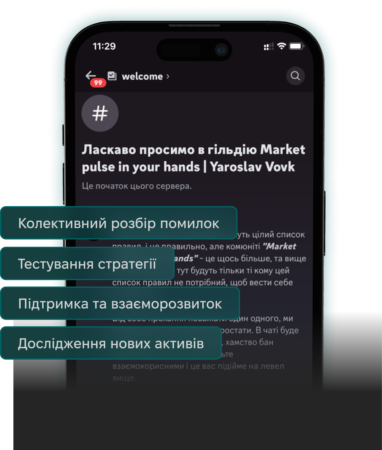 Розблокуйте для себе цінність спільноти та відчуйте пульс ринку у власних руках: спільна аналітика ринку, щоденне вдосконалення, спілкування з однодумцями та багато іншого